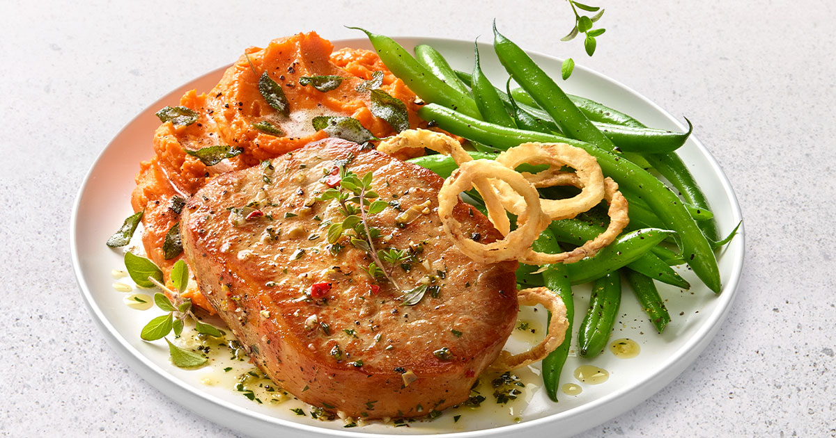 - 1 (12 oz) pkg Chef's Counter garlic herb pork loin chops (marinated & ready-to-cook)